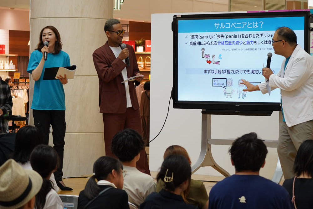 ■ EXILE NESMITH氏「健康で長生きするためには、全身の筋肉がとても重要です!」 EXILE NESMITH氏は、「近年、加齢に伴う筋肉量や筋力の低下、そして身体機能の衰えを特徴とする“サルコペニア”が1つの病名として確立されています。健康で長生きするためには全身の“筋肉”がとても重要です。」と伝えました。さらに、「肝臓と筋肉には深い関係があり、肝機能が低下すると筋肉は萎縮してしまいます。一方で肝機能が改善すると、筋肉の発達が見られることから、肝臓の健康が全身の健康に深く関わっていることがわかってきています。」と続けました。