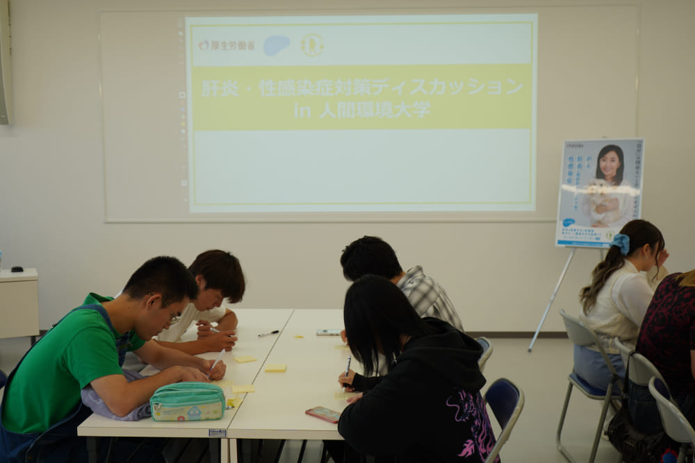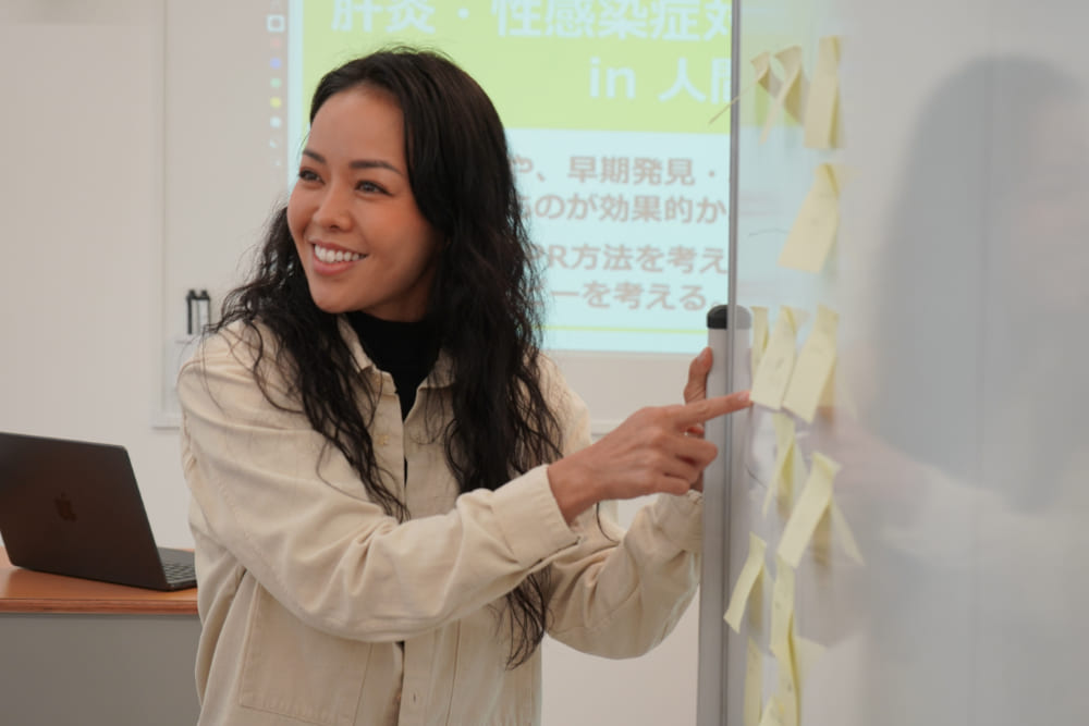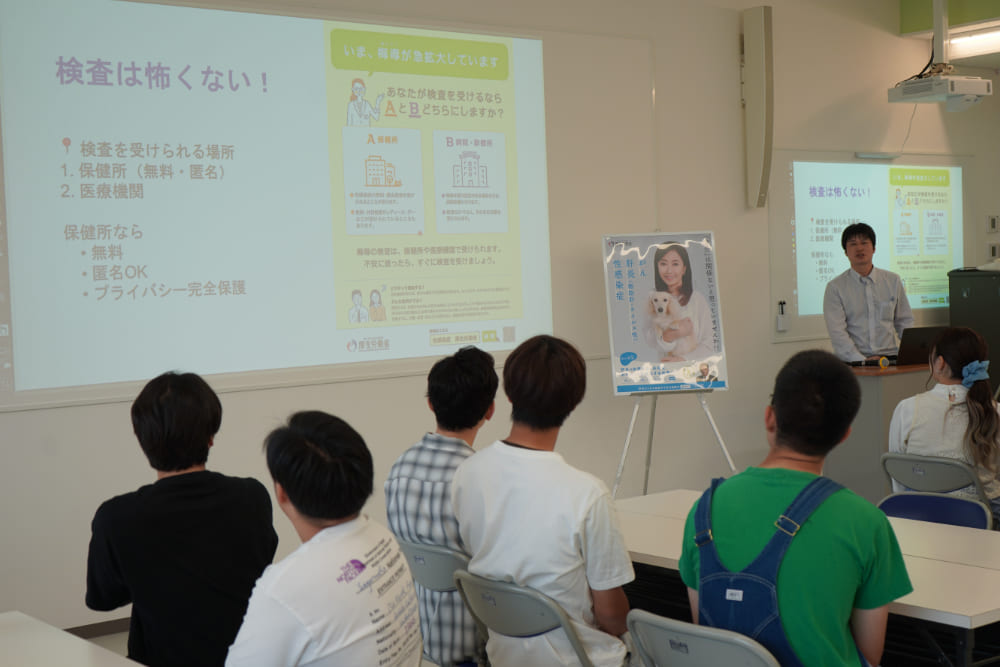 2025年9月29日(月)に愛媛県の人間環境大学にて、健康一番プロジェクトサポーターのMaasa氏が、肝炎や若者を中心に感染が拡大している梅毒などの性感染症対策について、「効果的なPR方法」と「キャッチコピー」の2つのテーマを学生の皆さんとディスカッションしました!