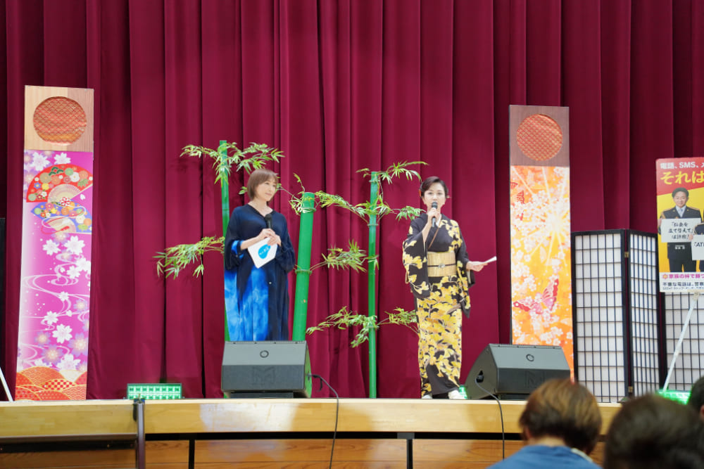 2025年10月13日(月・祝)、石川県の輪島市立輪島中学校で開催された、「能登半島地震被災地復興応援コンサート 第3弾 『響け!!OH!艶歌』百花繚乱夢舞台」に「知って、肝炎プロジェクト」肝炎対策特別大使の伍代夏子氏、およびスペシャルサポーターの高島礼子氏らが出演し、健康と防犯をテーマにした啓発トークを行いました。